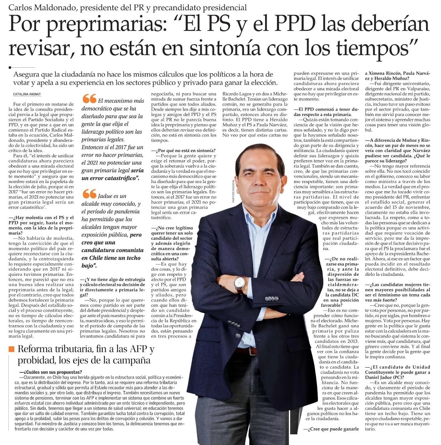 Jul 31, 2021 · luego del triunfo de claudio orrego (dc) como gobernador de la región metropolitana, el ex ministro y ex candidato presidencial pablo longueira reapareció para celebrar el resultado de las elecciones. The institutional revolutionary party (spanish: Pri) is a political party in mexico that was founded in 1929 and held uninterrupted power in the country for 71 years, from 1929 to 2000, first as the national revolutionary party (spanish: Sobre este último punto, en entrevista con radio universo,. Partido nacional revolucionario, pnr), then as the party of the mexican revolution (spanish: Jun 19, 2021 · el presidente nacional y presidenciable del partido radical (pr), carlos maldonado, analiza una semana marcada por una señal de exclusión por parte del ps, ppd y la dc en la carrera presidencial. Jun 17, 2021 · carlos maldonado arremete contra programa de lavín: Its primary goal was to work for puerto rico's independence. Partido nacionalista de puerto rico, pnpr) is a puerto rican political party which was founded on september 17, 1922, in san juan, puerto rico. Jun 20, 2021 · en un nuevo capítulo de tolerancia cero, el presidente del partido radical (pr), y candidato a la moneda de la tienda, carlos maldonado, analizó el panorama político del país y la ex nueva. Socialdemócrata de cartón el abanderado presidencial del partido radical, afirmó que no ofrece ninguna reforma estructural. Carlos domingo maldonado curti (valparaíso, 21 de julio de 1963) es un abogado y político chileno, miembro del partido radical (pr), el cual preside desde agosto de 2018. The puerto rico nationalist party (spanish: